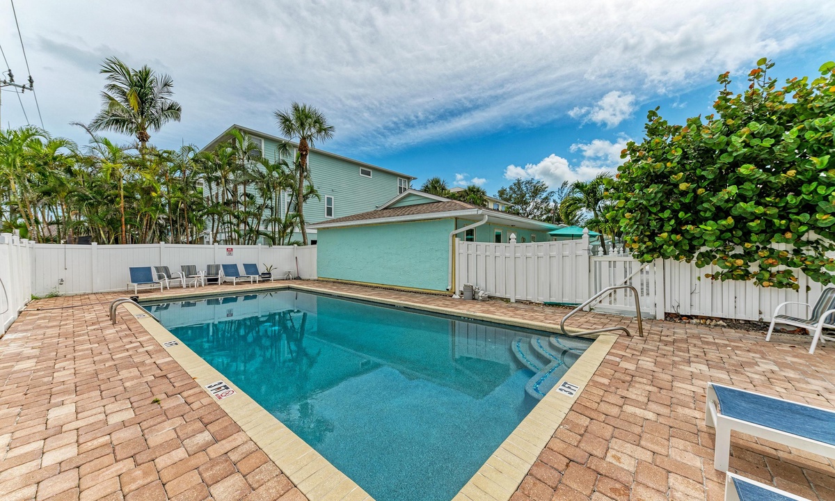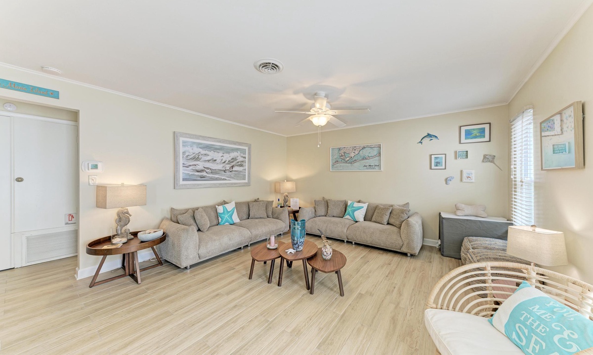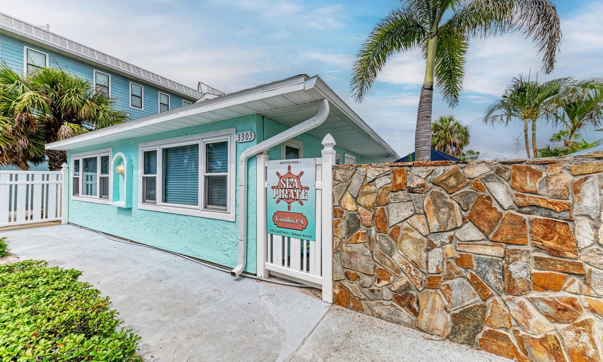 "Sea Pirate 2" is a bright and sunny, ground-floor vacation rental condo that features beach decor, has an oversized heated pool and a patio that allows you to enjoy the outdoors. Relax and enjoy a picnic in the community pool or adjacent garden area, or go shopping in one of the nearby island shops.