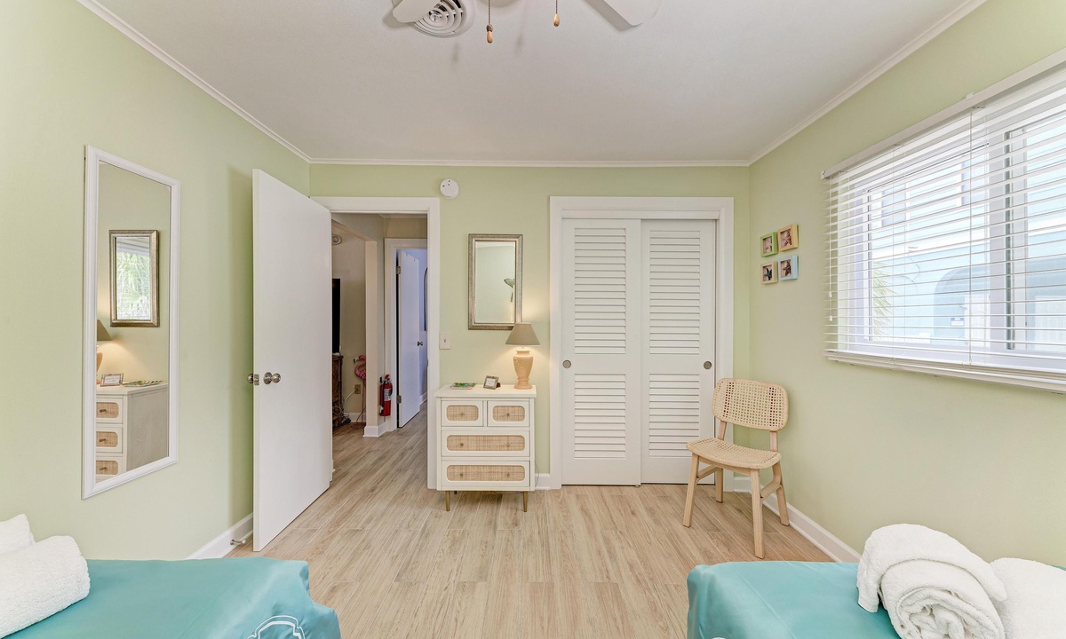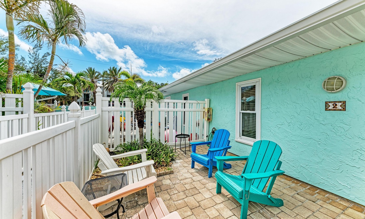 A Seashell Throw From The The Pristine Gulf Of Mexico two bedroom, one bath, wireless internet holiday condo. "Sea Pirate 2" is a stone's throw away from the pristine Anna Maria Island beaches. Relaxing condo sleeps up to four guests with a king bed, and set of twins. Flowing floor plan with front entry patio with table and umbrella to dine alfresco!
