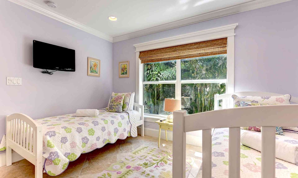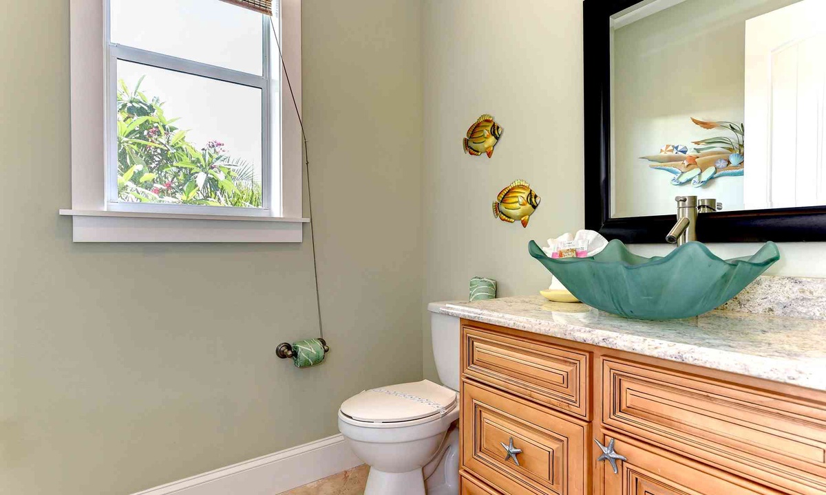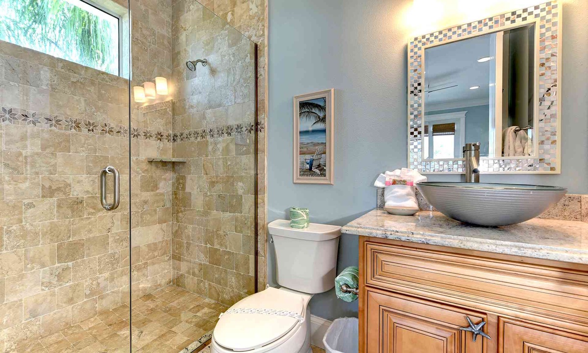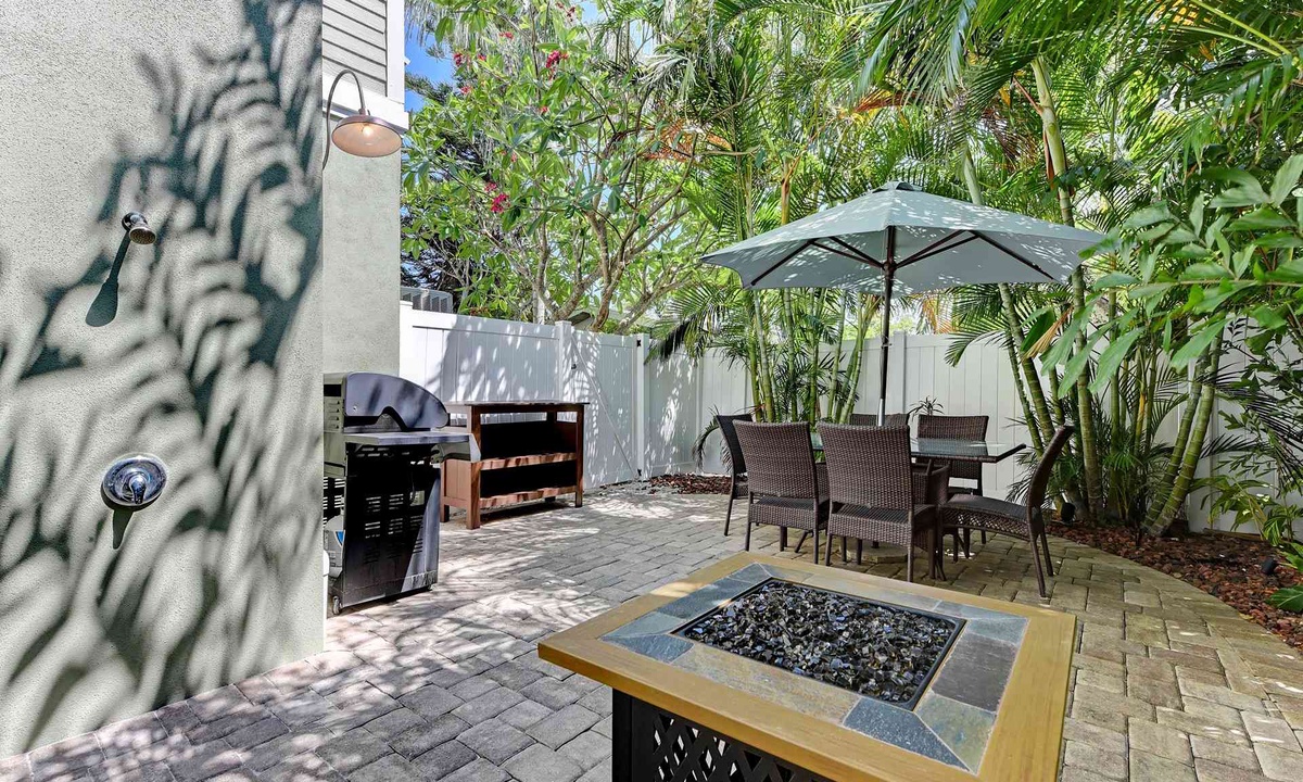 In the backyard at this Anna Maria Island vacation rental you’ll love the gorgeous spa and heated pool with a fun tiki umbrella. Relax in the great patio furniture among lush manicured landscaping. There is even a bathroom located off the pool area for your convenience. This backyard island oasis is the perfect spot for a family cookout with a propane grill and fresh gulf breezes.