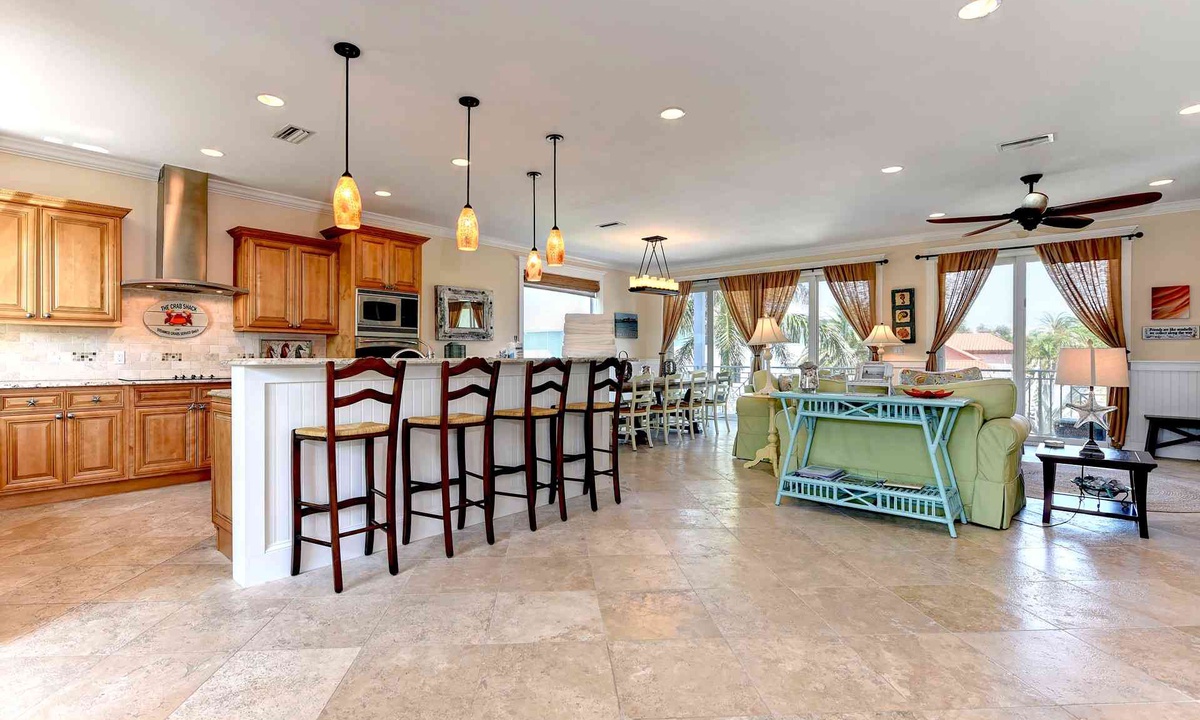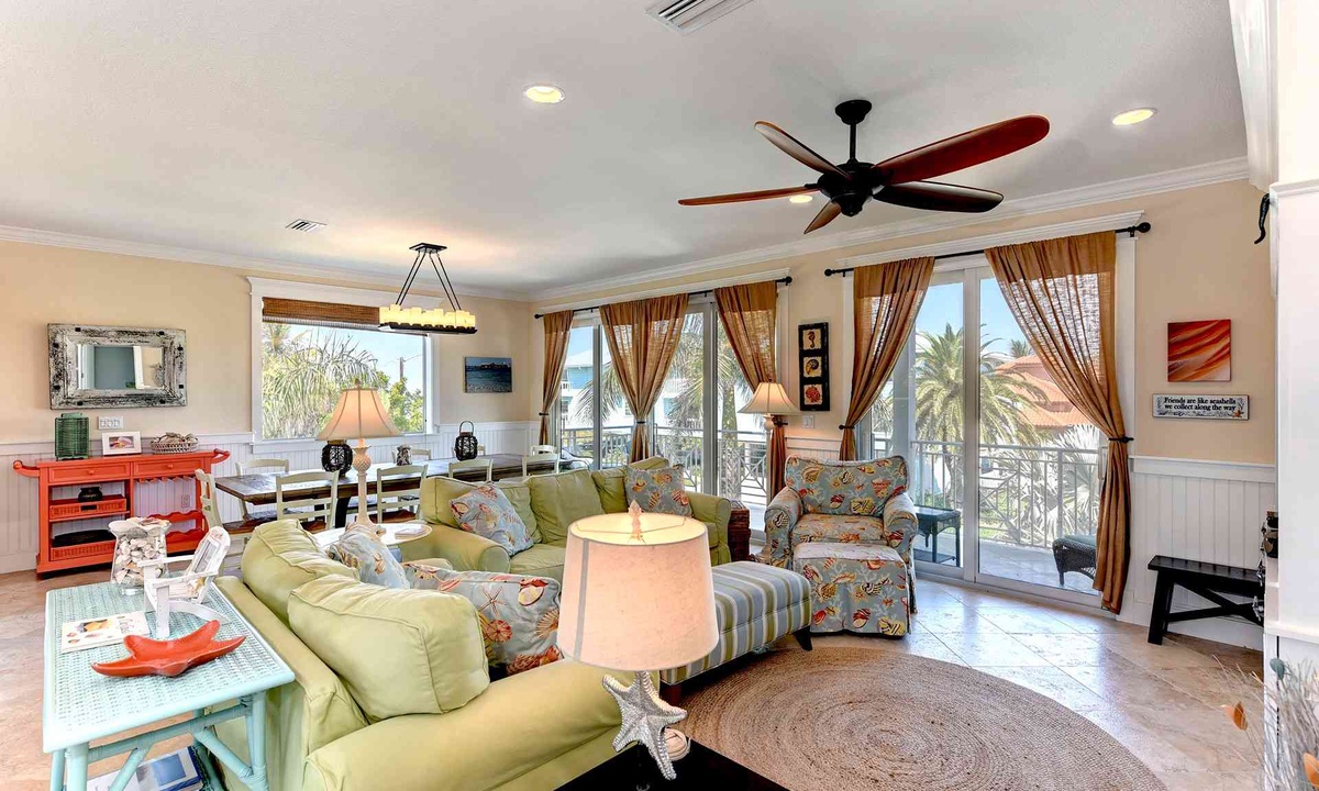 When you arrive at “Seashell and Sunsets” you’ll find a well-appointed home with all the amenities you’d expect from a five star Holmes Beach vacation rental. This home offers a roomy main living area with great outdoor spaces; both perfect for keeping your group entertained on a memory maker island vacation.
