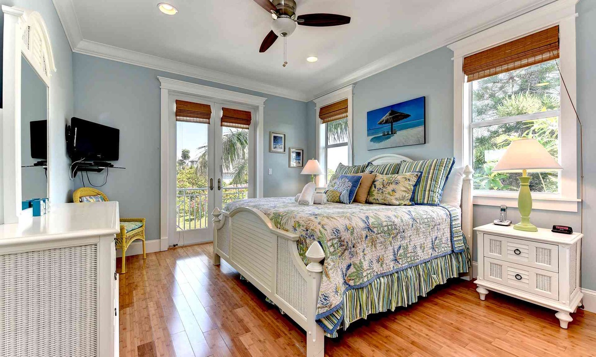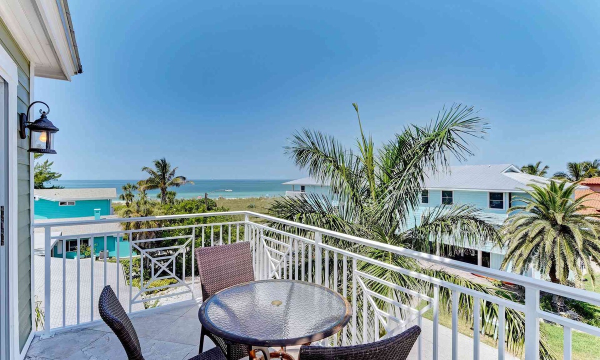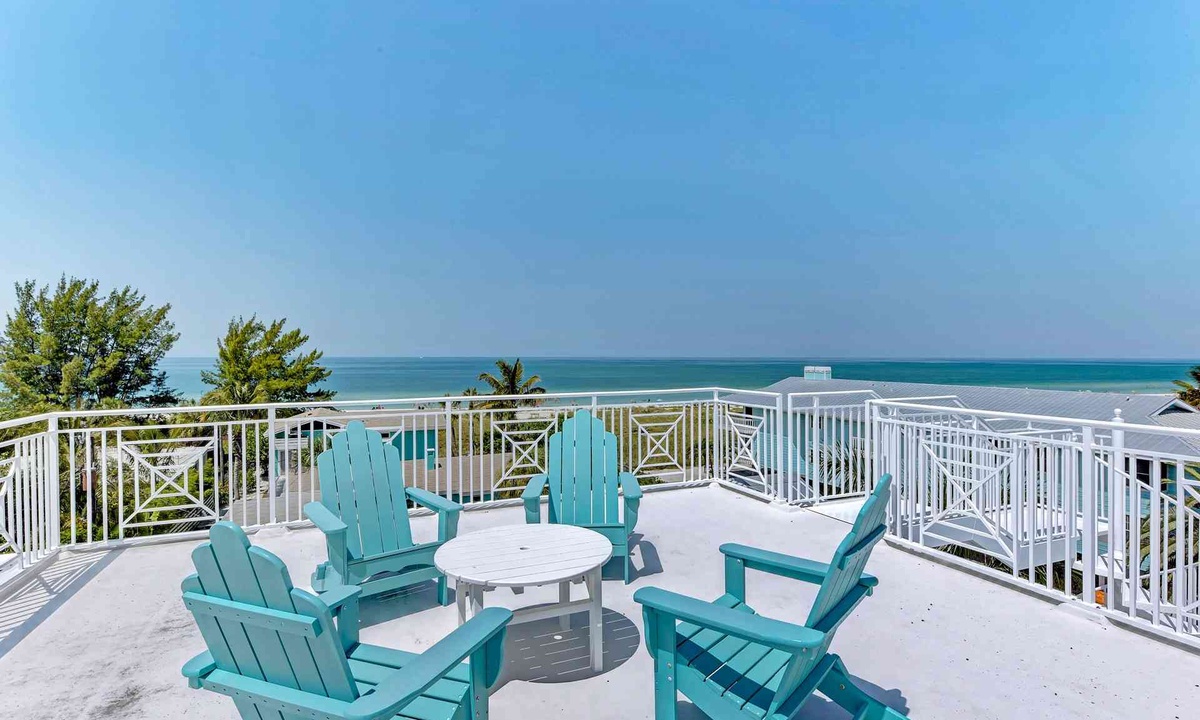 This Anna Maria Island vacation rental offers several great open balconies along with a spiral staircase taking you from the Master bedroom and den balcony up to the roof top. You will love catching the sunset from the rooftop balcony with views of the gulf and powder white coastline of the beach.