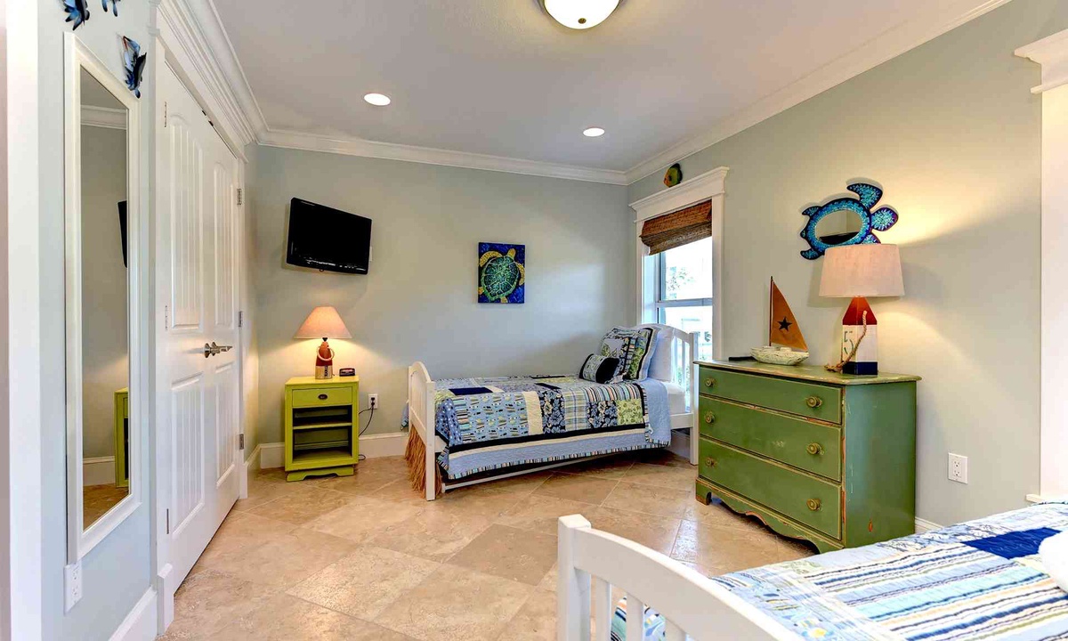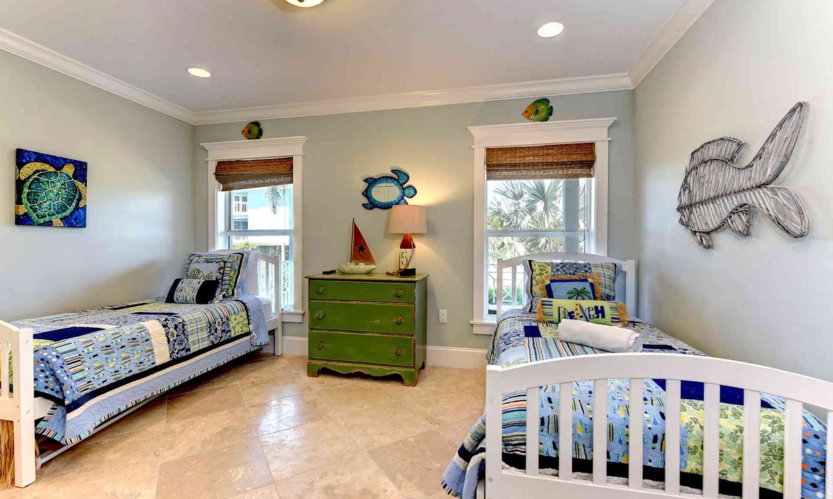 All five of the bedrooms including the den sleeper sofa offer premium linens and flat screen television. This home offers two master bedrooms both with king beds, master bathrooms and balconies. One of the master bedrooms offers gorgeous west facing direct views of the gulf along with a relaxing spa tub in the master bathroom. The additional two bedrooms offer a twin bunk bed with a pull out trundle in each.