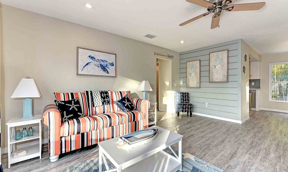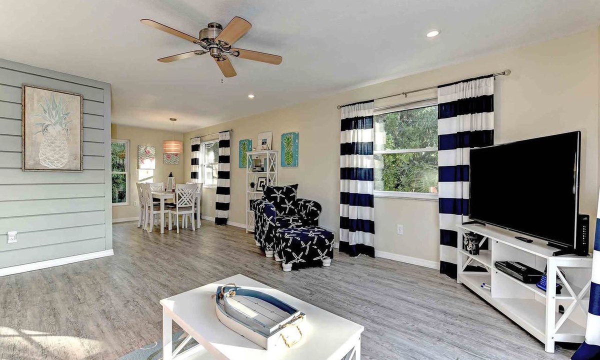 "Sugaree" located at 5405 Gulf DR Unit A is an beautifully renovated duplex only a short stroll to the beach. 2 bedrooms and 2 bathrooms accommodates up to (6) people: 1 King, 2 Twins and 1 Sleeper Sofa. This property showcases designer furnishings and is fully equipped with all the most updated features. This vacation rental is close to shopping, dining and hop the free trolley and explore from Bradenton Beach to the city of Anna Maria.