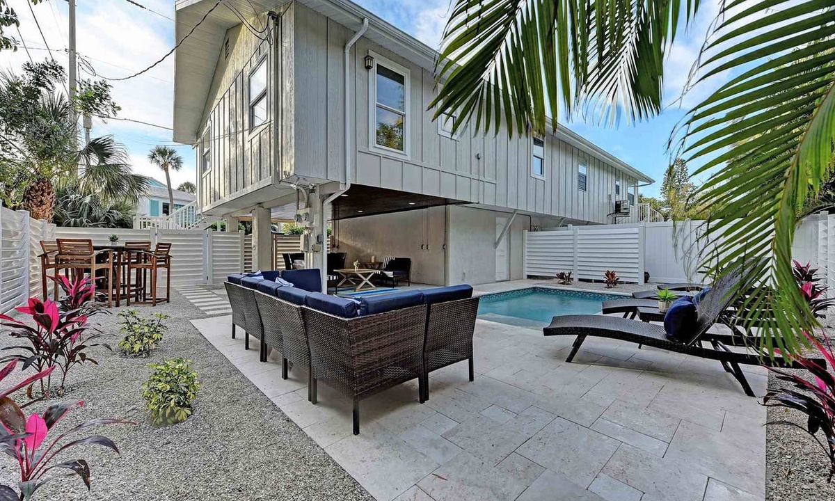 The private heated pool with comfortable pool side furniture will melt your worries away. Wonderful covered poolside space to enjoy your time here on beautiful Anna Maria Island. This unit is only a short walk to the beach for all day fun in the water or stroll back later for a magical sunset on the Gulf of Mexico. Enjoy the best beaches on the West Coast of Florida. Close to the beach and close to dining in shopping in the quaint city of Holmes Beach.